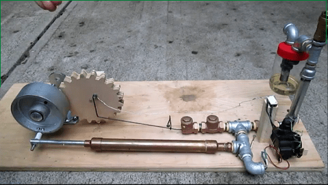 Here’s a cool little video from HowToLou.com (I’m guessing this guy is named Lou) with a third prototype of a homemade engine made strictly from hardware store parts. It’s not quite working yet, but it’s rather interesting and I think he’s on the right track.