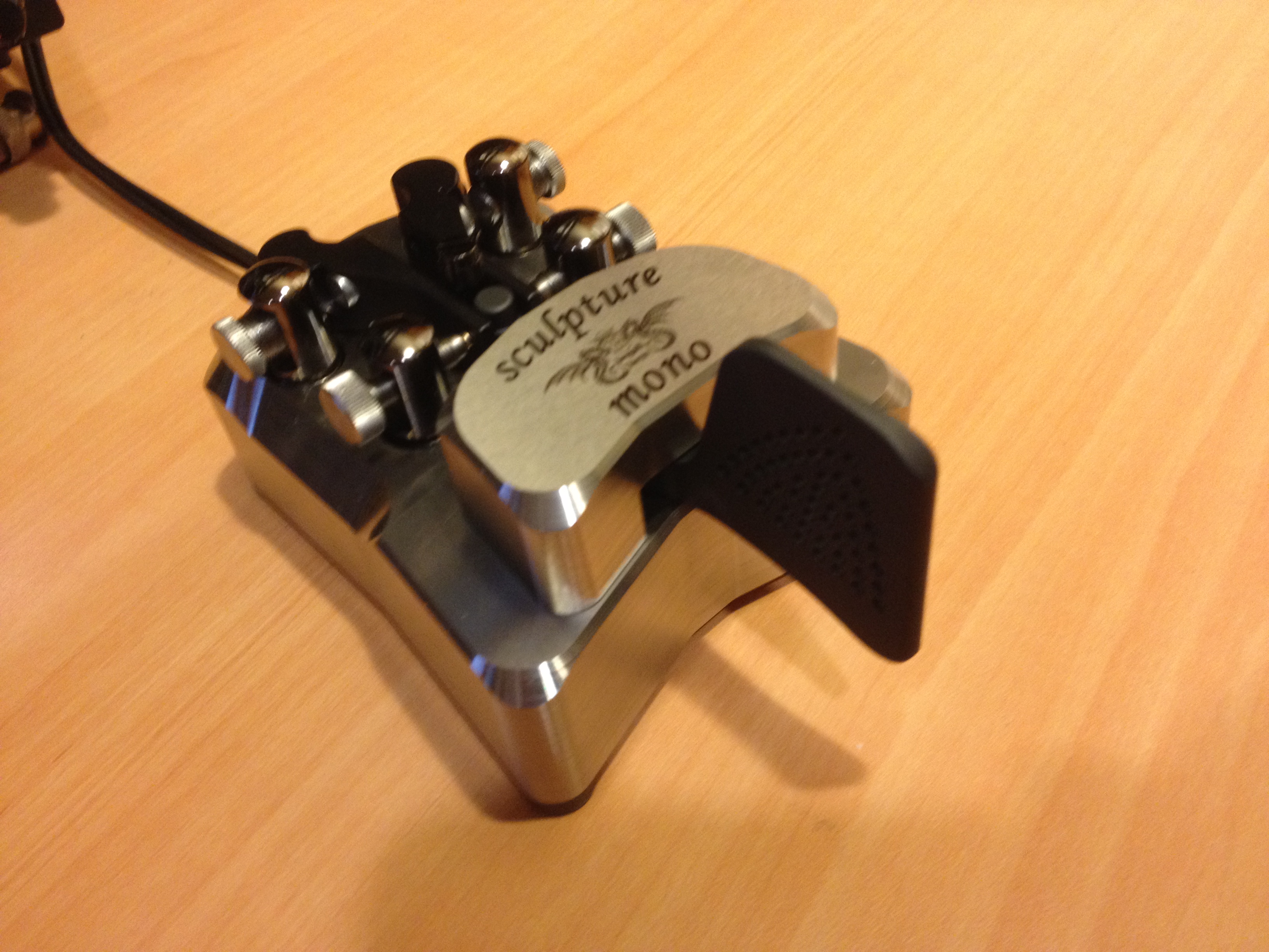 As far as toys that I acquired, besides various piece parts and cable I bought a new Rigol 100 Mhz digital oscilloscope. At the Begali booth I fell in love with the Sculpture Mono paddle. I reached for my credit card and was informed by the salesguy that they only accept cash or checks. I was really put off by this. Later that night I ordered the paddle on the web, at a cost $45 more than the hamfest price and some unknown amount of delivery time. Luckily Begali was shipping recent paddle orders from Ohio so I didn’t wait long.