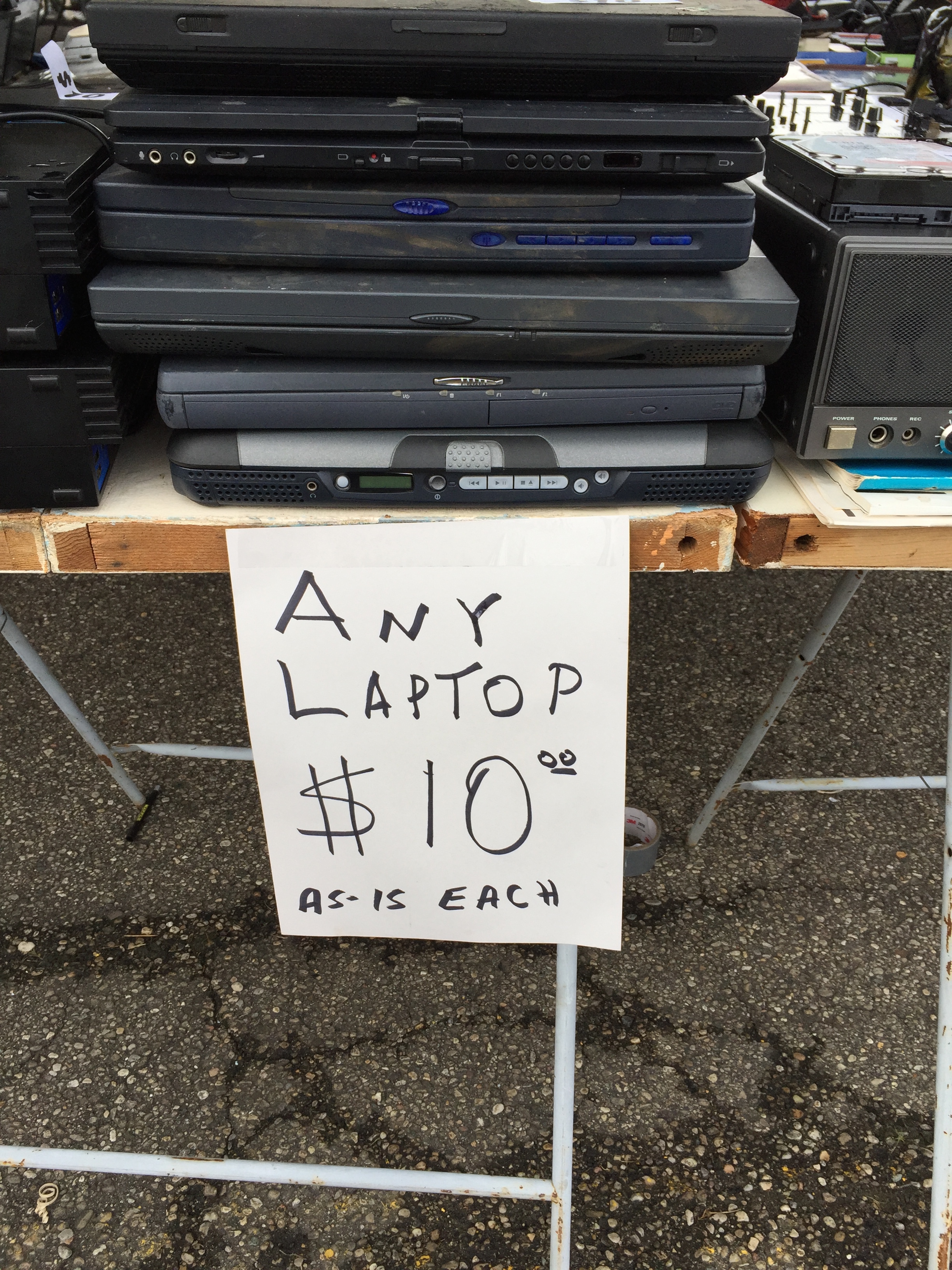 Those often annoying, sometimes threatening death machines known as rental scooters continue to roam the Hamvention. I don’t know if it was that I’ve become more accustomed to them or there truly are less of them, but it sure seemed to me that there weren’t as many as last year. What’s happening to the scooter people? Are they dying off? Are they disappearing during the Hamvention? Inquiring minds want to know. Undoubtedly the liability insurance for such an activity would be expensive, but I would love to have a scooter demolition derby some Hamvention afternoon. Folks could rent dilapidated scooters or bring their own pimped-out scooters for a battle royale of destruction and excitement. (Hamvention committee members, I can make this happen, you know where to reach me. I want a cut of the profits from beer sales. :-)